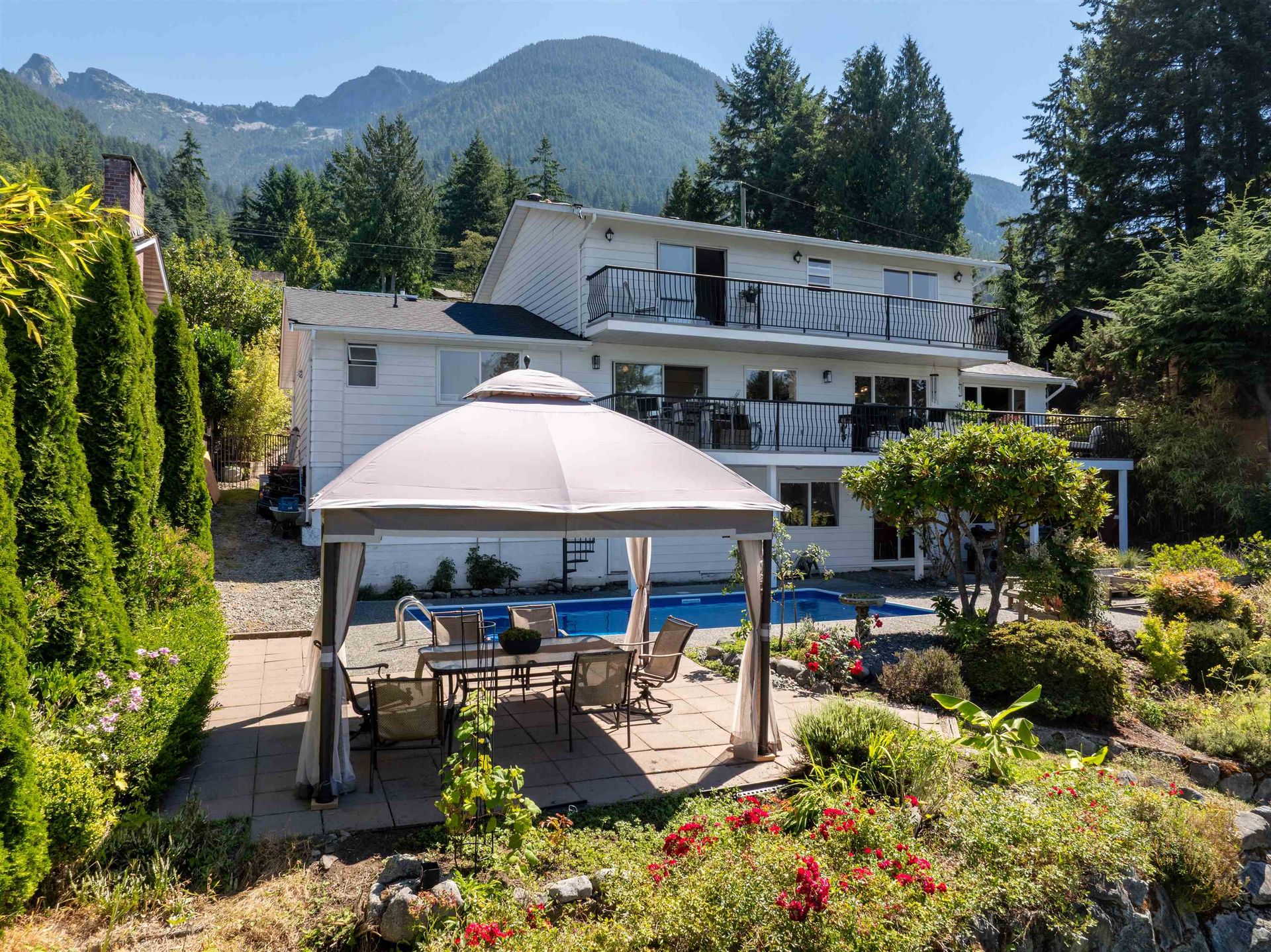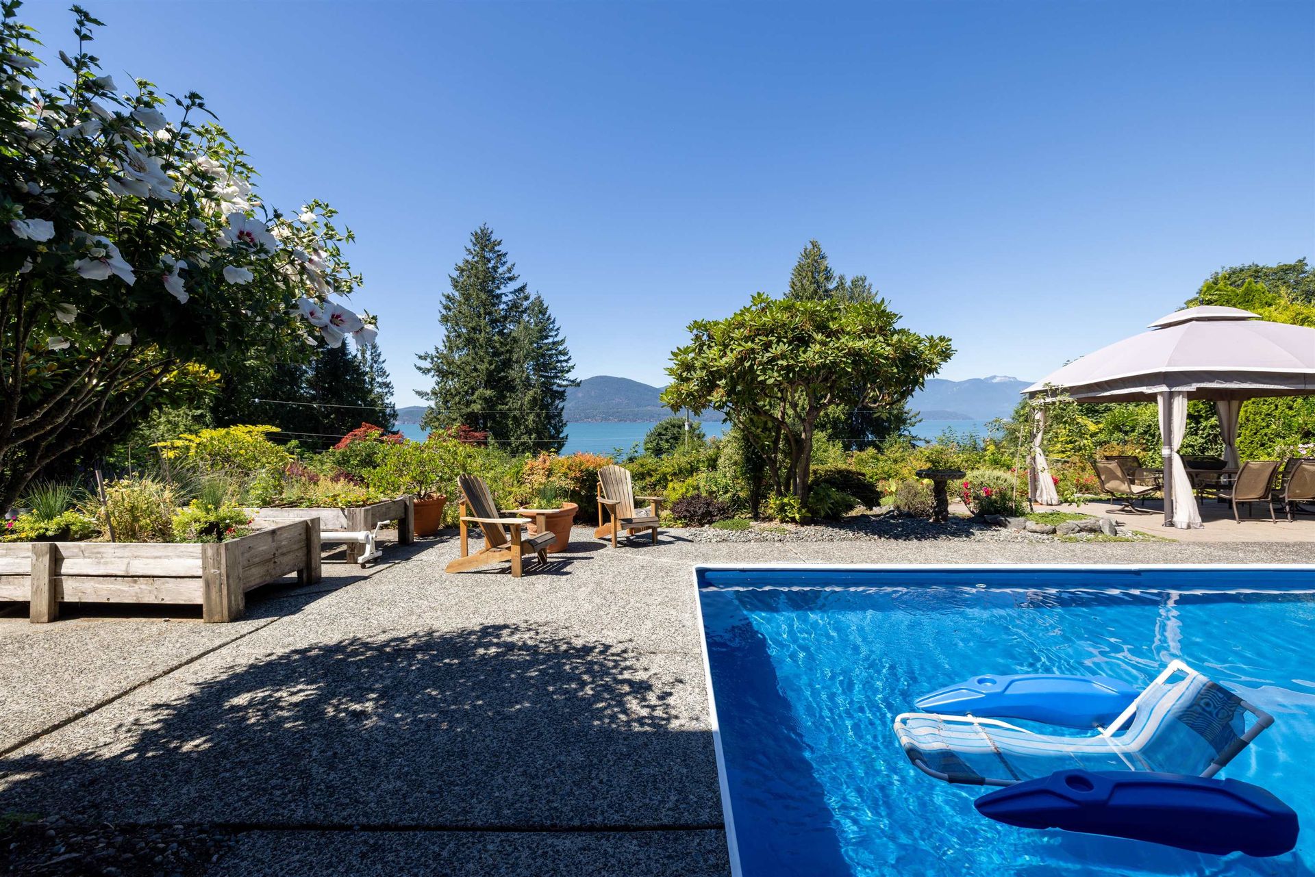Welcome to 110 Seaview, a warm & welcoming home on Lions Bay's favorite street! Offering beautiful ocean views, ample garden & lawn, a refreshing swimming pool & all within minutes of the beach, this is the ultimate in Westcoast living. 4 bdrms. up, + 1 down, 4 bathrooms, open plan LR/Dining, generous kitchen/eating area, S/S appliances, ample cupboards & counters. Walk out access to large view deck perfect for entertaining. Family room & laundry complete …the main floor. Beautiful hardwood floors throughout, woodstove up, F/p down. 2025 upgrades include roof, insulation, 11 windows, interior paint, pool liner, gazebo. Great separate area for extended family accommodation down. Easy driveway & large garage, this home is perfect for family living! Open Sun, Aug 31, 2-4