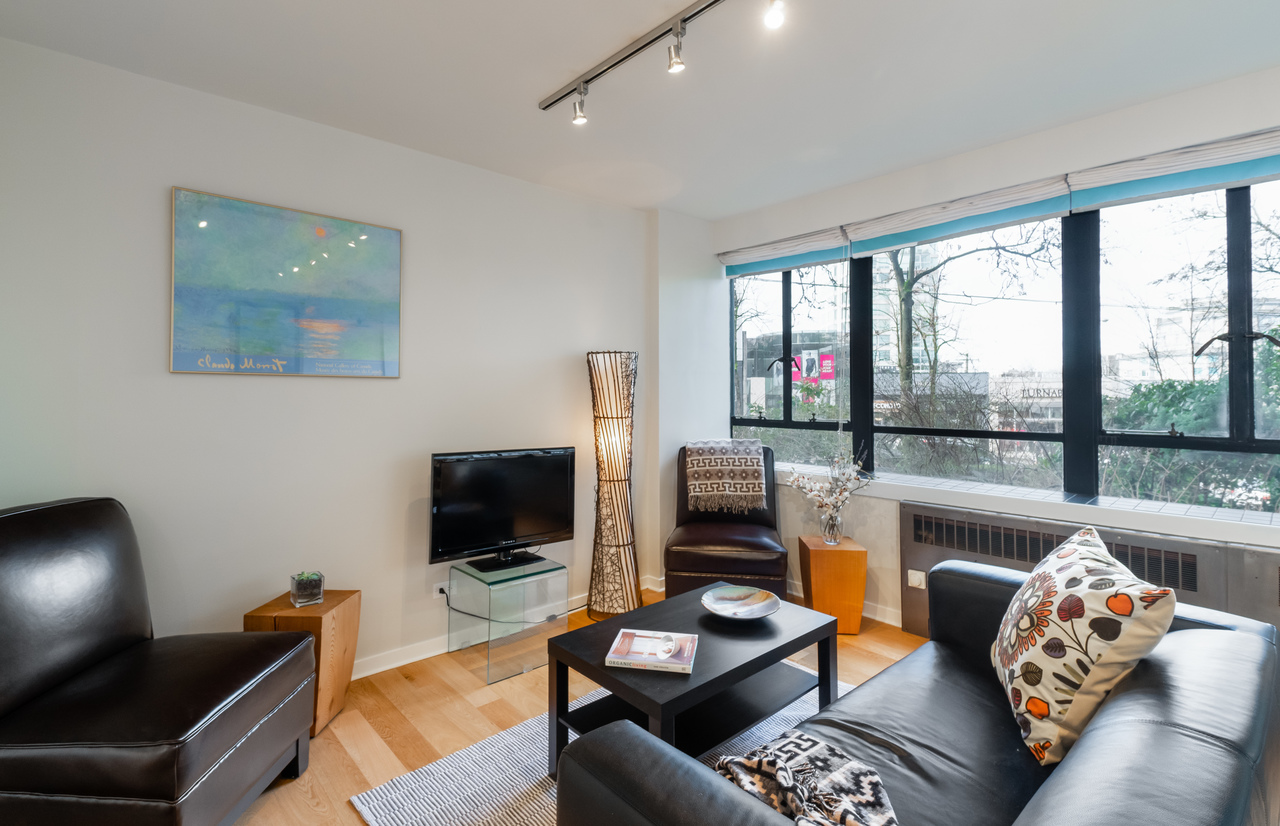 Renovated 1 bedroom at popular Hycroft Towers in trendy South Granville! Move right in to this modern 1 bedroom home with updates including kitchen cabinets, appliances, lighting and paint. A new bathroom tub, sink, and toilet complete the package. The open concept living room is ideal for entertaining. Hycroft is a concrete building in a location that is centrally located to UBC, Downtown Vancouver and Richmond. From here, walk to the best of South Granville amenities includ…ing shops, restaurants, and more! Hycroft amenities include a common area rooftop ideal for Summer evenings and a storage locker. Easy transit access. Quick possession possible. Cats allowed. Sorry no rentals.
