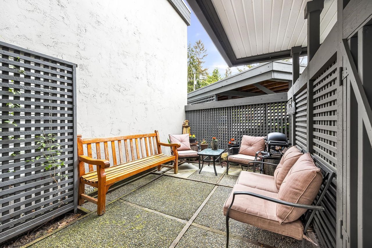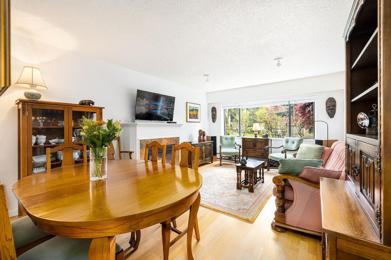 VERY RARE PEMBERTON HEIGHTS CONDO! The absolute perfect location within Plateau Village, this Garden level 2 bedroom condo lives like a townhome. Located on the quiet side of the building, this corner unit has a spacious floor plan with large principal rooms, a gas fireplace, ample in-suite storage, a functional kitchen with an eating nook, good a size laundry room. Offering a private exterior entrance, the home overlooks the peaceful gardens in this well-run complex. Pets welcome! Walking distance to The Cornerstone Bistro, Edgemont Village, Capilano Elementary (IB school) and transit. This is an ideal property for downsizers or young families looking for a home in a wonderful, residential neighbourhood.