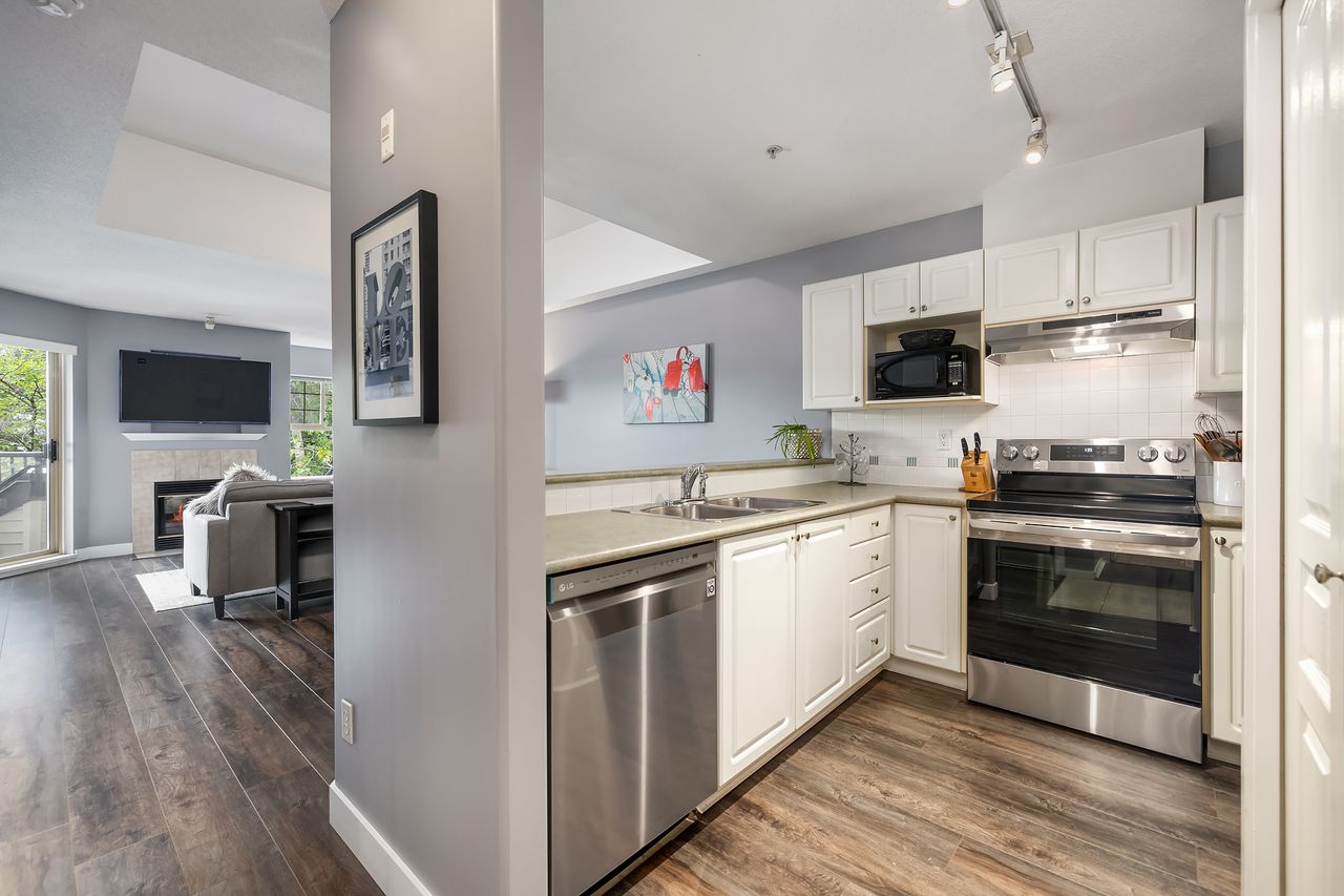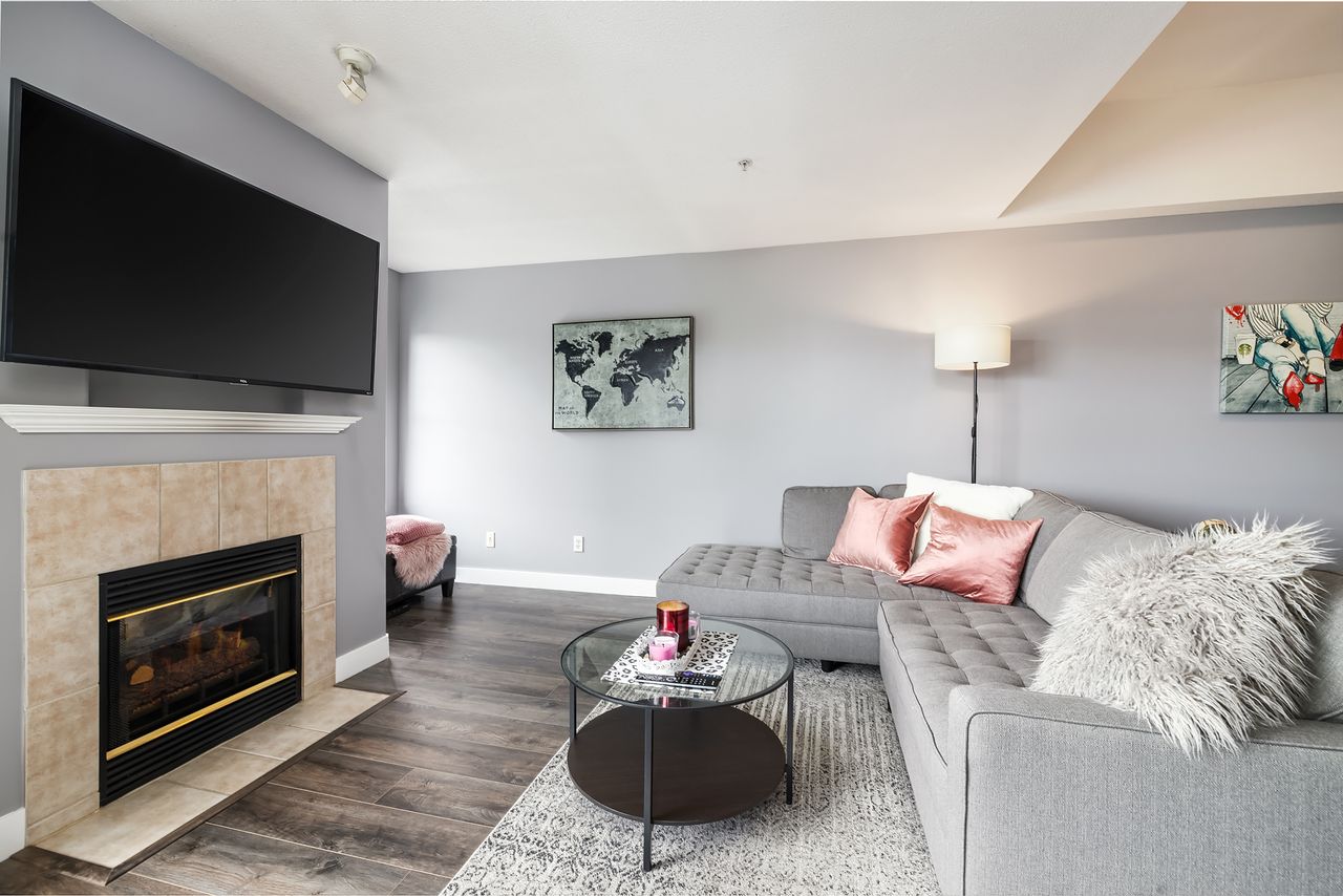 WELCOME HOME TO DISCOVERY REACH! Over 720 sqft of functional living space in this TOP FLOOR 1 bedroom home. You’ll love the 10’ ceilings in the dining room, cozy gas fireplace in the living room & large WEST facing patio, perfect for taking in the afternoon sun. Primary bedroom is LARGE w/ plenty of room for a king-sized bed, walk-in-closet & ensuite. Meticulously maintained by its owner & updated throughout w/ new floors, appliances and paint. Built b…y Bosa, Discover Reach is steps to the skytrain, Save-On Foods & the best of New West living. Prime parking & storage included. Our pleasure to show!